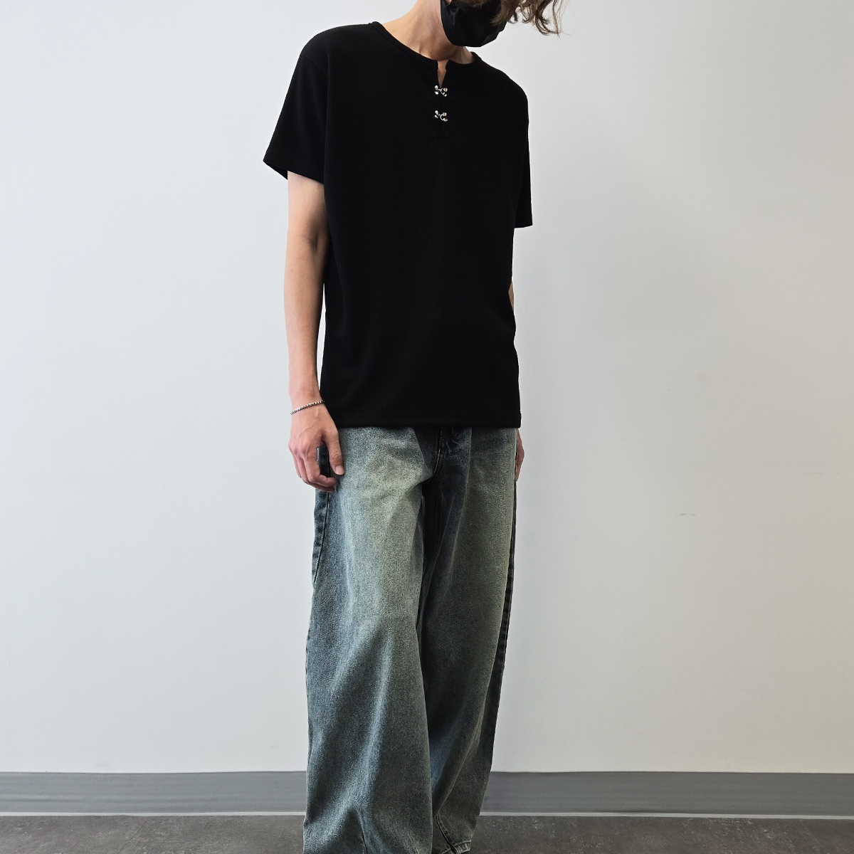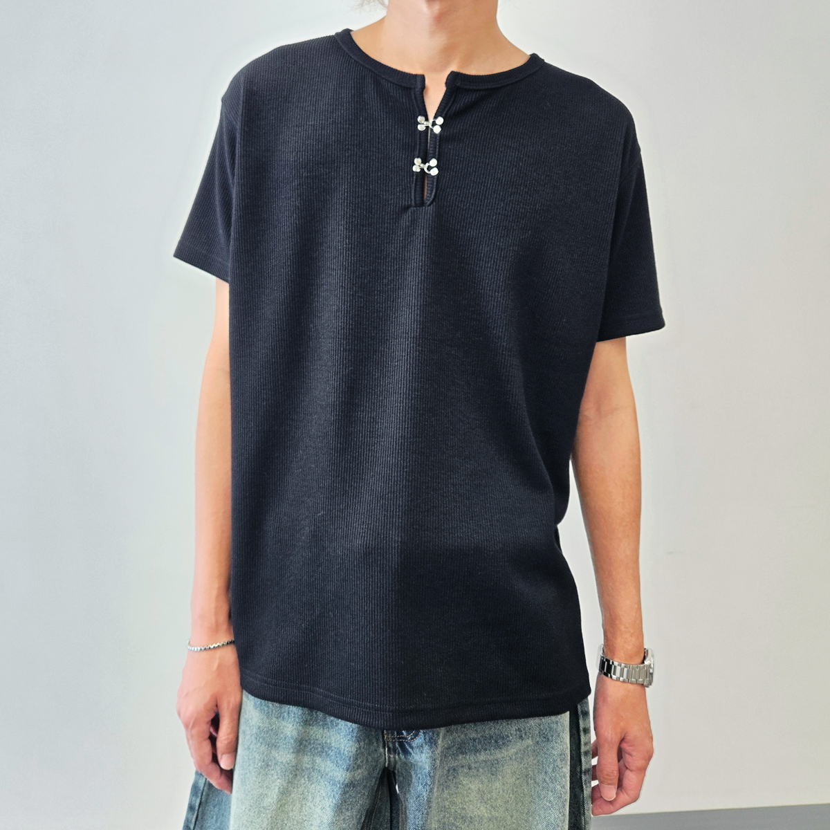 Hook Henry Neck Short Sleeve│후크 헨리넥 쇼트 슬리브