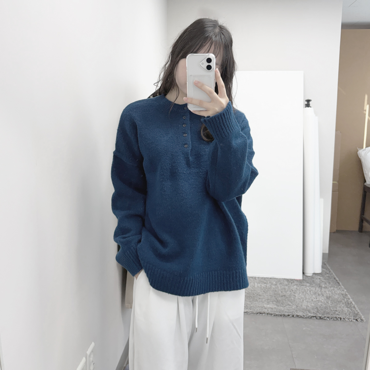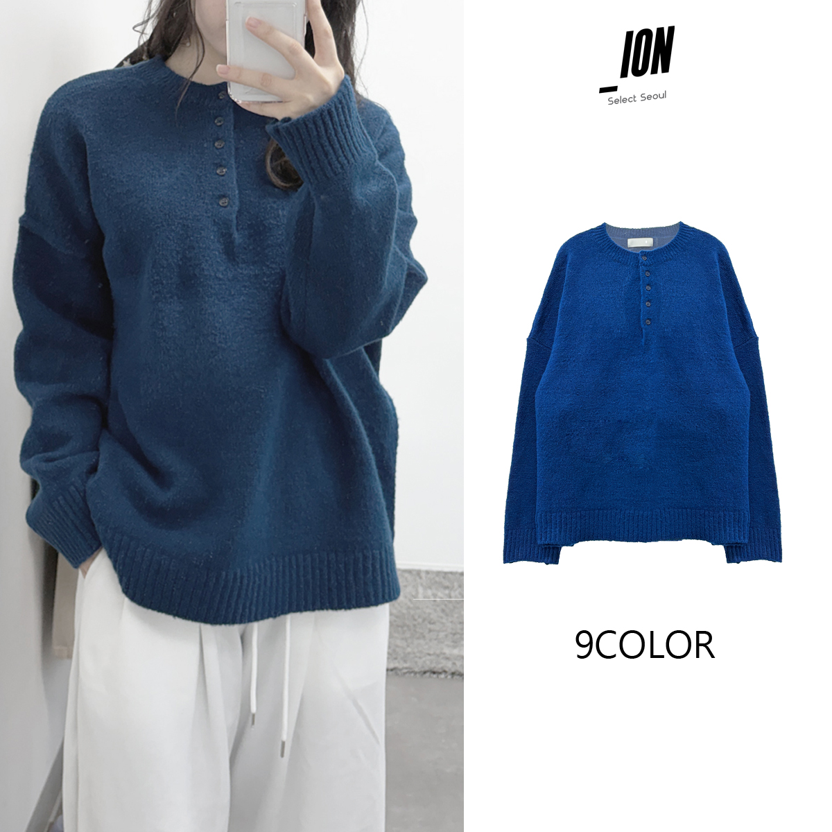 Button HenryNeck Knit│버튼 헨리넥 니트