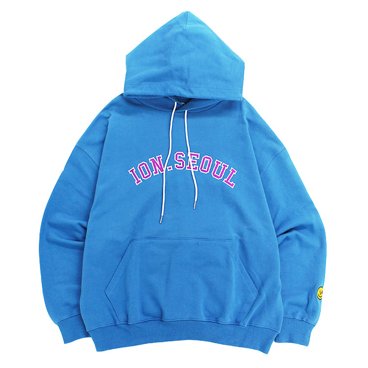 IONSEOUL Smile Signature Embroidery Overfit Hoodie (Ocean Blue)