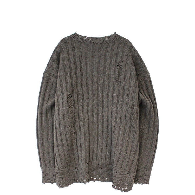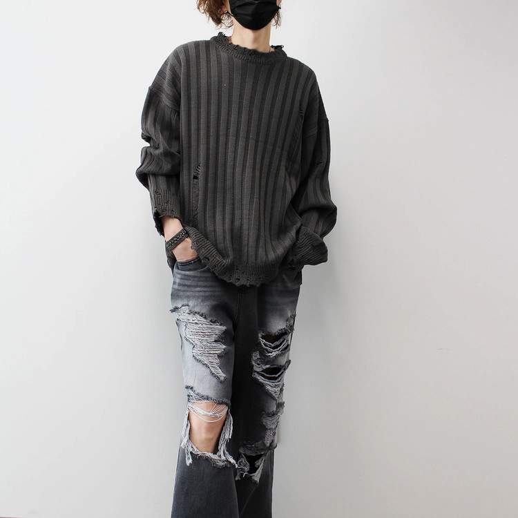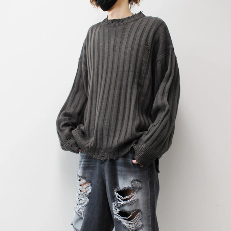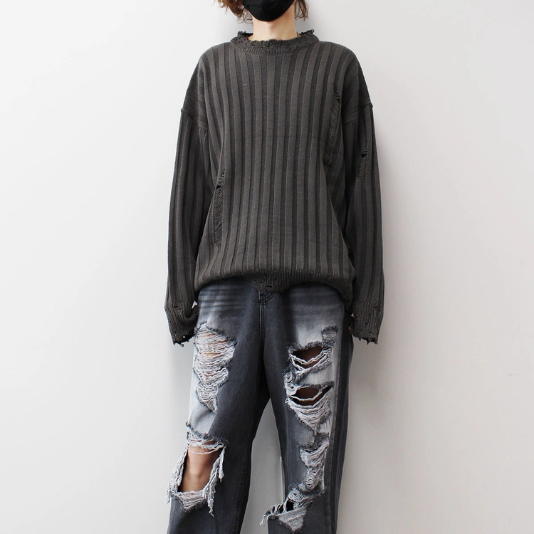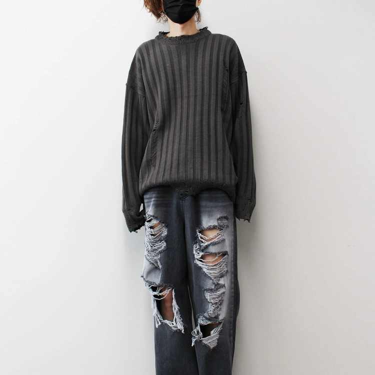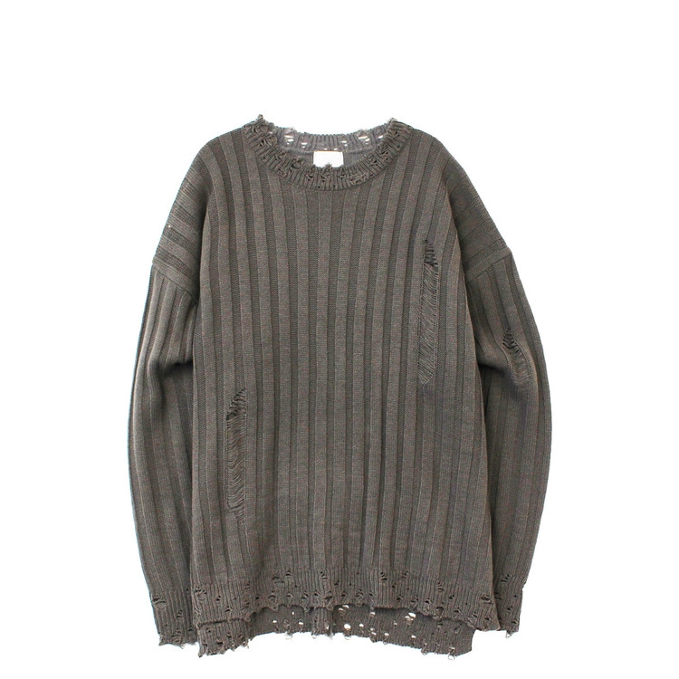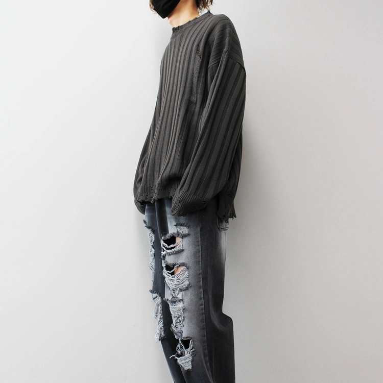 Ribbed Crack Damage Slit Over Knit│립드 크랙 데미지 슬리트 오버 니트